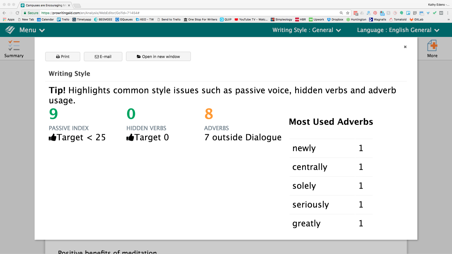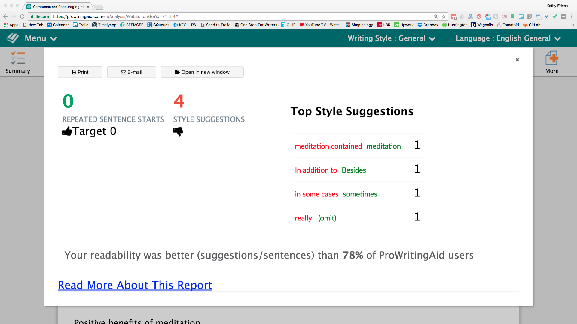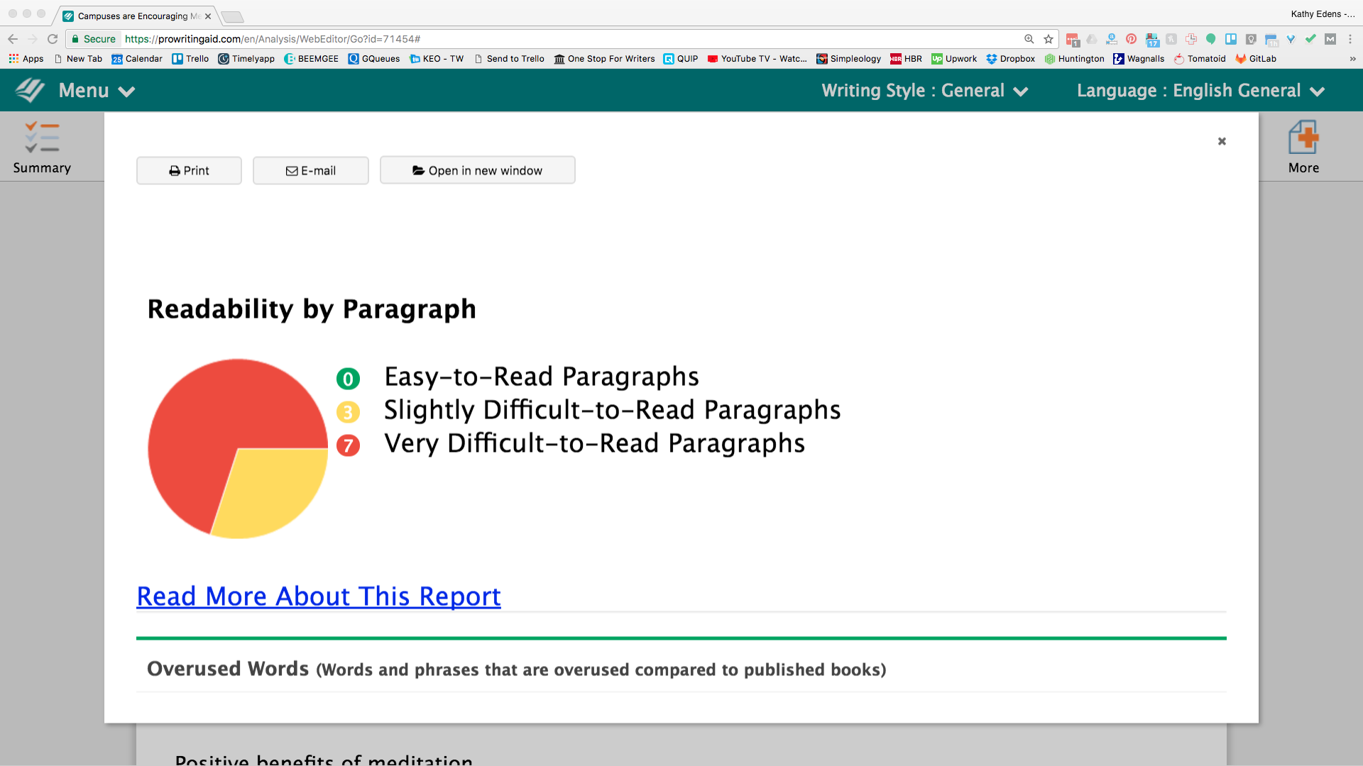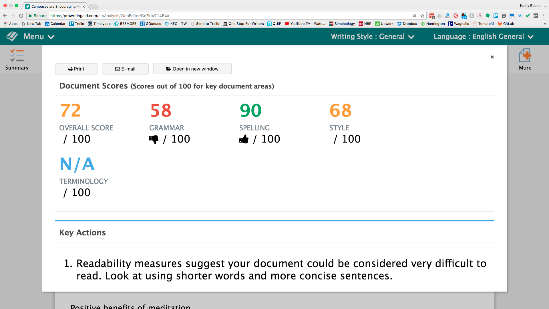 Use your content’s overall score as a gauge to see how improvements you make enhance your writing. You can rerun the Summary Report after you make changes to see your new and improved document score.