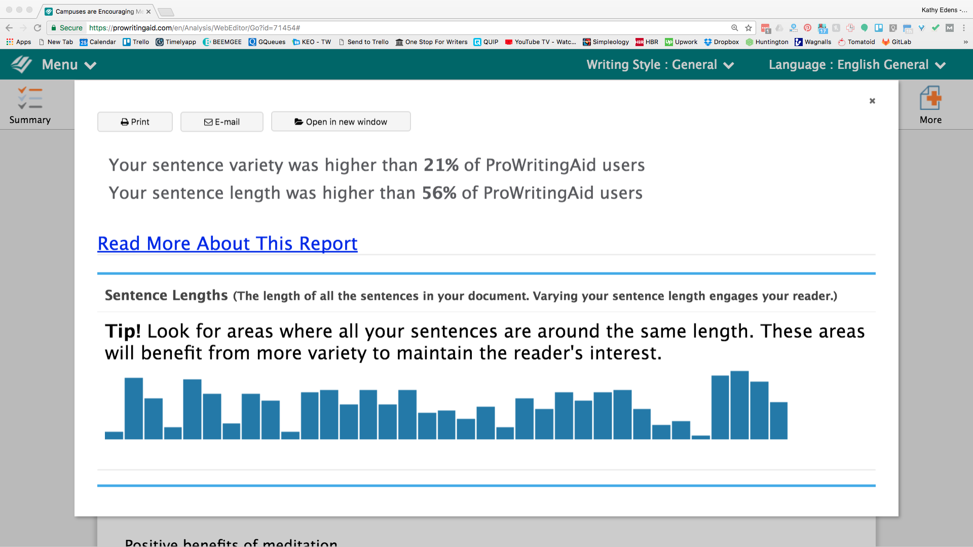 Notice in the middle how the sentences are all close to the same length. With this report, you know where to focus your attention to enhance readability.