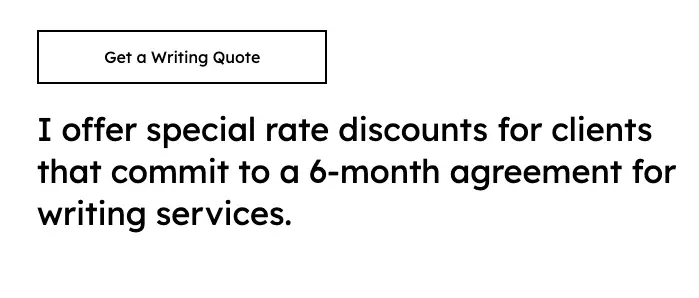So if you want to encourage more clients to sign a 6-month or annual contract, offer an incentive. This could be a small discount on your services or a perk, like an additional 500-words of writing every month you’re under contract. You can mention the incentive in your project proposal to new clients. Or you can include it as part of a call-to-action on your freelance writer website. Here’s what mine looks like: