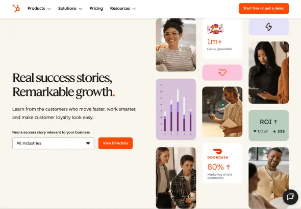 - Write short case studies that connect your work to outcomes (demo requests, qualified leads, investor confidence). See Hubspot page for customer success stories as case studies: