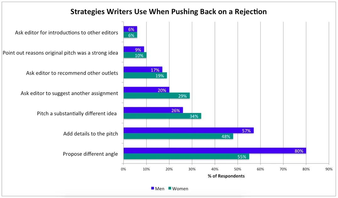 As you can see, 80% of men and 55% of women from this study would suggest a new approach in response to a rejection, rather than giving up straight away. They get to stick close to their original idea while proposing something new to the business. It shows that you can come at the problem from a fresh perspective, which is appealing.