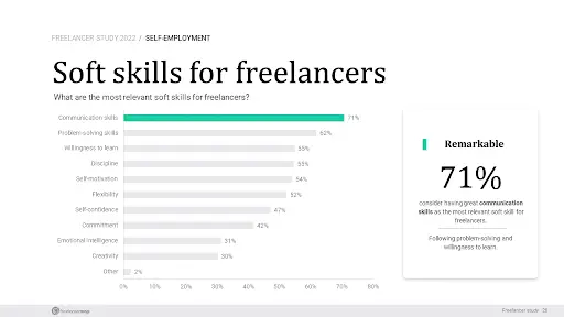 It turns out, 71% of fellow freelancers agree that it’s the number one soft skill freelancers should have, especially for negotiating rates.