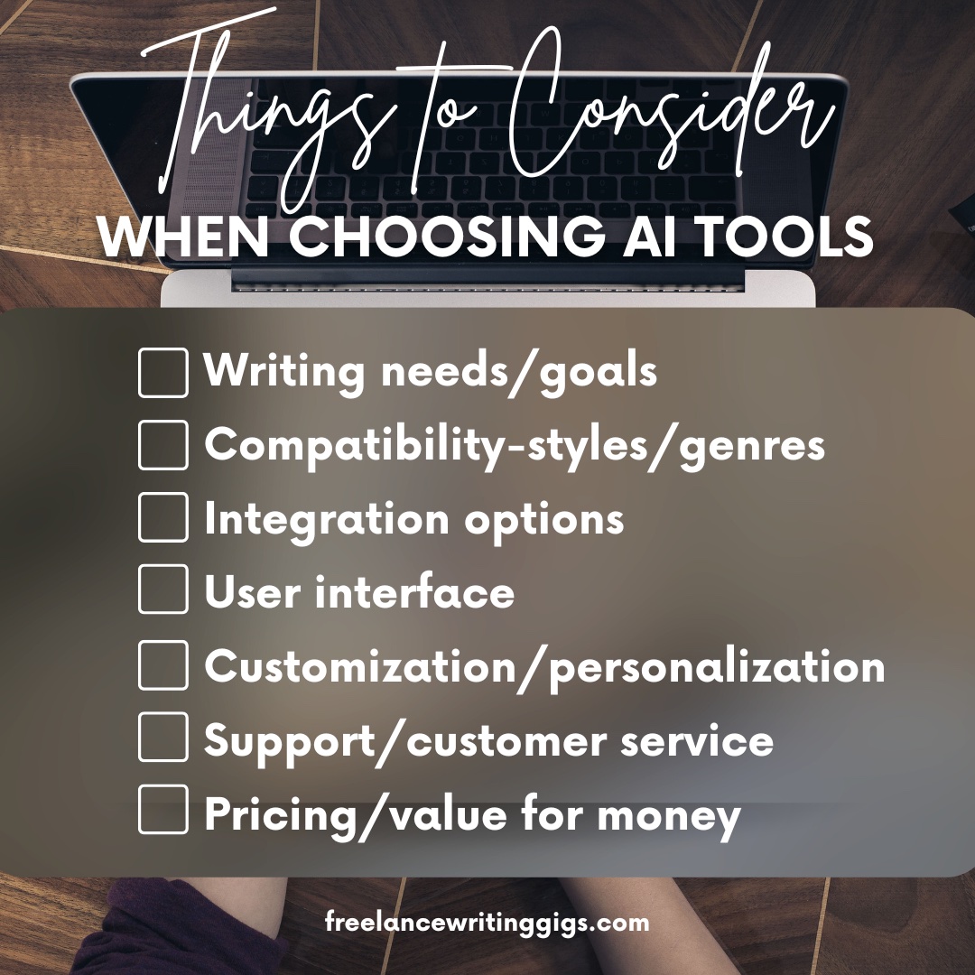 Selecting the right AI writing tool for your freelance writing needs requires careful consideration. It’s not a one-size-fits-all deal. Let’s look at some factors that will help you make your decision.