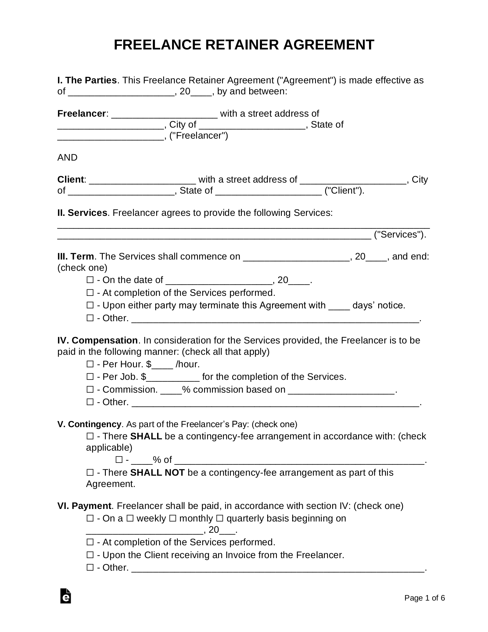 Setting up a freelance retainer agreement is rather straightforward. Here are the main things to include to help you get started: