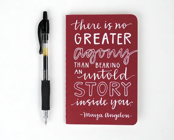 It’s been a while since we had a giveaway, hasn’t it? It’s not every day that we come across generous people who want to share their beautiful – and useful – work with others, but Emily of EmDashPaperCo is giving away one of her hand-lettered mini journals. Not only will it be very useful to any writer, it also has a a very apt quote, which I hope will serve as inspiration.